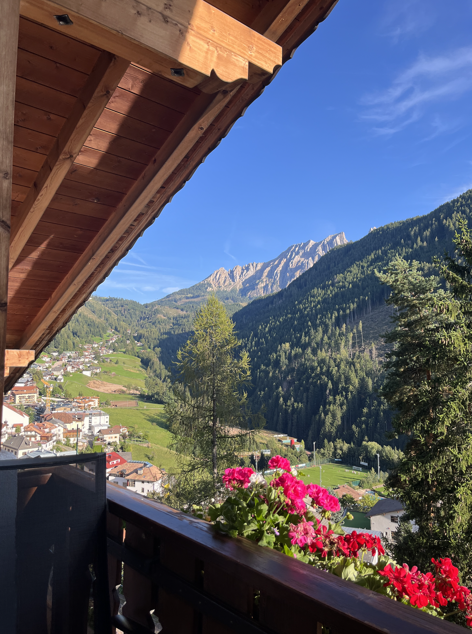 솔직하게 단점도 말씀드리면, 차 없이는 가기 어려운 위치예요. 어짜피 돌로미티 자체가 대중교통 인프라가 제한적인 지역이라 렌터카가 거의 필수라 큰 문제가 되지는 않을 수 있지만 복잡한 도심과도 살짝 떨어져있어 무조건 차가 있어야 해요. 단 관광객으로 북적이는 중심가가 아닌 조용한 지역에 있어서, 아침저녁으로 정말 고요해요. 이른 아침에 창문을 열면 교회 종소리가 마을 전체에 울려 퍼지며 로젠가르텐을 바라볼 수 있어요.