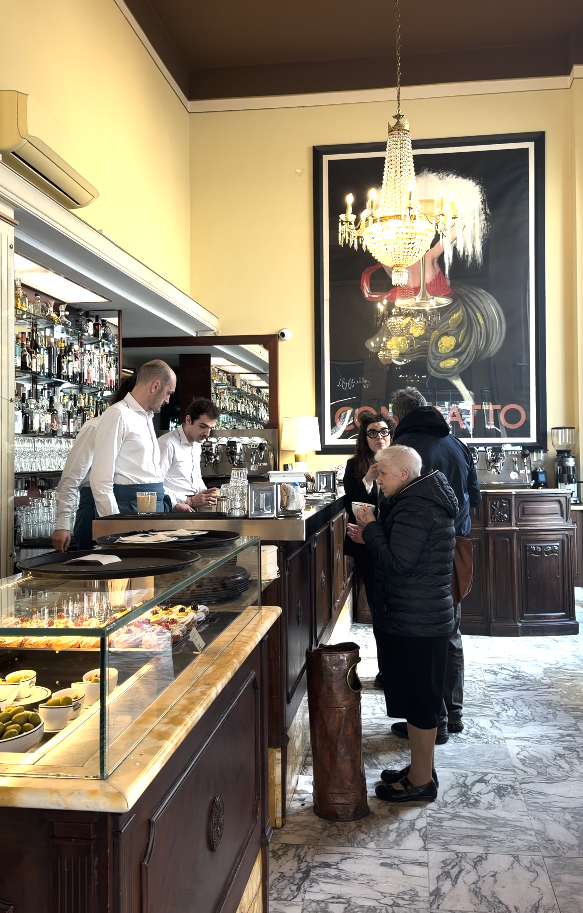 아침(7:30~10:00) — 현지 직장인들이 바에 서서 에스프레소와 크로아상을 빠르게 즐기는 시간이에요. 이탈리아 아침 문화를 가장 생생히 느낄 수 있기 때문에 숙소가 근처라면 바 자리에 서서 저렴한 가격으로 아침을 즐겨보시는 것도 추천해요.